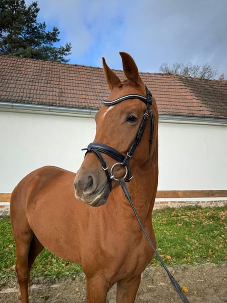 A sleek beautiful mare with a golden temperament suitable even to amateurs. Bred by the Schockemölhe stables; charisma is a charming horse with a lot of blood but a gentle temperament. A good walk, super cadence in the trot like her father Furst Jazz and a canter with good hind action. Her damline brings her beautiful colour and strong chest. She is ridden indoor, outdoor and in the forest. She was broken in by me and has had a good education with a gentle hand. She is an angel on the ground and can graze with other horses and go in the paddock with other horses.