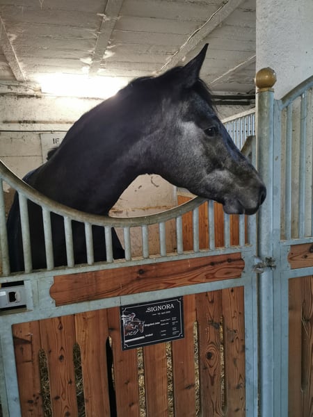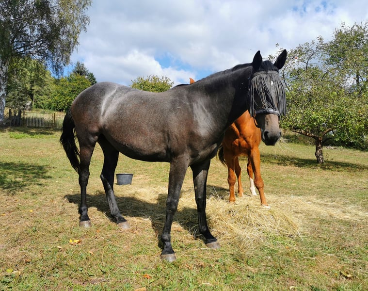 Se vende mi yegua Lillyfee, criada por mí misma. Durante cuatro años he esperado poder montarla y presentarla en concursos, pero lamentablemente una lesión sufrida en su potro impide su participación en competiciones deportivas. Lillyfee proviene de una excelente yegua de salto, descendiente de Singulord Joter x Acadius. La madre compitió hasta 130 cm en competición, con potencial para mucho más (con el jinete adecuado). Si se desea, puedo enviar videos de la madre. Lamentablemente, a los 8 meses, Lillyfee sufrió una lesión en la parte trasera derecha. Ahora tiene casi 4 años, aunque en el paso muestra cierta tendencia a acortar un poco la zancada en la parte trasera derecha (aproximadamente medio casco) y a veces también al transicionar del galope al trote. Por lo demás, se desplaza "normal" y corre con sus amigos en la paddock. Para un uso en deportes de alto nivel, no la considero adecuada, y dado que tengo varios potros jóvenes, deseo entregarla en manos amorosas. Lillyfee puede usarse sin problema en actividades de ocio, pero también es muy recomendable desde el punto de vista de la cría. Es hija de Colman y, en realidad, es de pura raza Holstein (a pesar de tener papeles de Oldenburg). A los 3 años ya mide 1,70 m y se ve muy imponente (postura, cuello). Tiene una línea superior preciosa, una postura muy correcta, grandes y redondeos cascos sanos. Estimo que alcanzará una altura final de 1,73-1,75 m. Su madre en su momento pasó una inspección de 1er nivel. Desde el punto de vista de carácter, también es una verdadera joya. En el pasillo del establo, ya se puede montar en paso, incluso mi hija de 8 años la ha montado, ¡es muy tranquila! Seguramente también sería ideal para trabajar en carro. Aún está en desarrollo (nuestro paddock lleva tres semanas helado, de lo contrario ya habría hecho más). Aprende muy rápido y no se complica en absoluto. Quien busque un caballo grande, bien criado, para cría y ocio, encontrará en Lillyfee la opción perfecta. Solo la entregamos en las mejores manos. Puede visitarse en cualquier momento (con gusto, también con una prueba de monta breve).