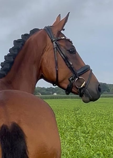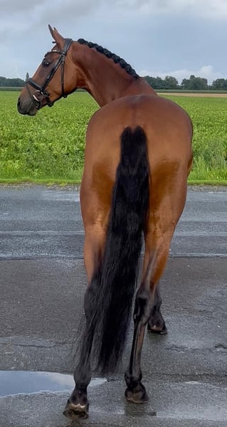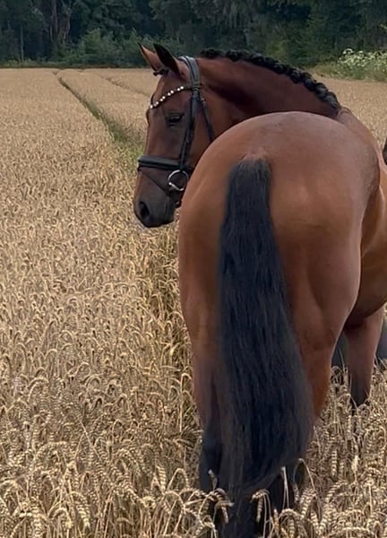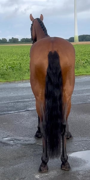 Valentina Valverde x Dante Weltino x Rubinstein I This enchanting 4-year-old mare can bring a smile to your face. Directly from the breeder, this charming jewel stands at 1.60 m. Her excellent rideability and big heart make her a very interesting partner and competition horse. Ideal as a transition horse and also suitable for less experienced riders. Blacksmith and loading friendly. Under saddle for about 3 months. Ridden in the countryside. Herd compatible. Healthy with a very good vet check. For information or video, please contact with full name via WhatsApp.