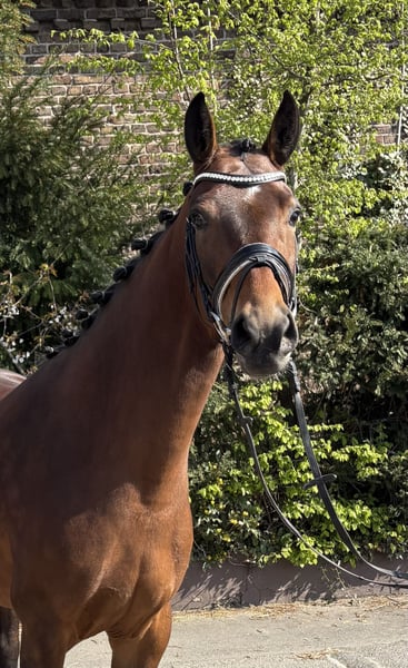Freundliche Stute mit gutem Charakter und top Tüv zu verkaufen. Die Stute ist gut angeritten und geht auf Reitpferdeniveau. Ablongieren ist nicht notwendig. Im Trab und Galopp ist sie schon sehr sicher, im Schritt fehlt ihr noch etwas Gelassenheit, sodass sie zum Schreiten kommt. Ihre Mutter war erfolgreich bis Inter I mit über 70% und hat auch in jungen Jahren etwas mehr Zeit gebraucht um sich zu entwickeln. Die Stute ist sehr lieb und einfach zu reiten.