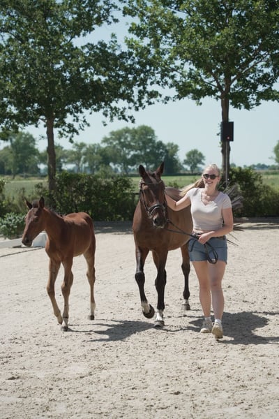 For sale is a very charming and versatile mare with the lineage Casiro I – Quintender. The mare comes directly from the breeder, is healthy, and has been raised appropriately in a herd environment. She was already awarded as an elite foal at the foal show. In 2025, she had a graded foal and has since been carefully and age-appropriately started under saddle. Special attention was paid to giving her plenty of time—incorporating many breaks and allowing her to progress at her own pace. From the beginning, she has proven to be an absolute star pupil: eager to learn, uncomplicated, and very rideable. She is now also ridden confidently by less experienced riders. Her sire, Casiro I, is known for his versatile genetics and produces particularly rideable, brave, and characterful horses that are well-suited for amateur riders while also exhibiting excellent movement. This mare embodies these qualities perfectly: obedient, uncomplicated, pleasant to ride, and full of joy in work. I see her as an ideal ladies' riding horse, a good transition horse, or a reliable all-rounder that is enjoyable both in daily training and in the field or at first competitions. Please feel free to contact me if interested. More information, videos, or an introduction are available at any time. (The last three pictures show the mare as a foal.)