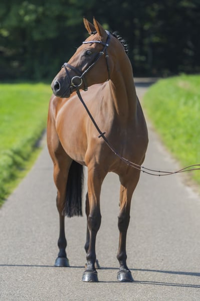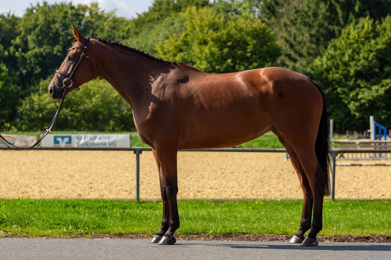 Carin Blue es una yegua de 4 años de edad, hija de Charthago Blue x Stakkato. Charthago Blue ha tenido éxito hasta la categoría alta. En el ámbito de la cría, hizo su debut el año pasado en diversas selecciones, donde algunos de sus descendientes también fueron seleccionados. En las últimas semanas, este semental ha causado mucha atención, ya que es presentado por la joven de solo 14 años, Johanna Klatte. La madre de Carin Blue, Sternchen, es una hija del famoso Stakkato x Argentinus. Sternchen ha sido utilizada hasta ahora solo en la cría. Del linaje materno de Sternchen provienen muchos caballos excelentes que compiten hasta 150 cm, así como sementales seleccionados. Es un caballo muy fácil de manejar. Siempre sale al prado con otros caballos. Está siendo entrenada por un jinete junior que la presenta con éxito en pruebas de salto de la categoría A, donde ya ha logrado algunas clasificaciones. Gracias a su gran carácter y su actitud hacia el deporte, el trabajo diario con ella es muy sencillo. ¡IVA deducible!