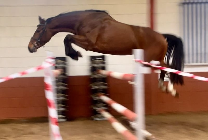 Zum Verkauf steht die vielversprechende 5-jährige Stute „Talitha“ mit einem Stockmaß von ca. 1,65 m. Abstammung: For Planet x Corianus x Baldini II x Sunset Boulevard xx „Talitha“ ist Staatsprämienanwärterin und überzeugt durch ihre sehr guten Ergebnisse in der Stutenleistungsprüfung (Freispringen 9,0 / Rittigkeit 8,0). Auch sportlich konnte sie bereits auf sich aufmerksam machen: Als Siegerin des Freispringchampionats 2024 in Höven sowie mit einem 2. Platz in einer Springpferdeprüfung unterstreicht sie ihr Vermögen und ihre Qualität. Sie ist altersgerecht ausgebildet, bereits turnier erfahren und zeigt sich unter dem Reiter motiviert, leistungsbereit und unkompliziert. Im täglichen Umgang präsentiert sie sich sehr brav, freundlich und zuverlässig. TÜV kann auf Wunsch jederzeit durchgeführt werden. Kein Notverkauf Eine äußerst interessante Nachwuchsstute für den gehobenen Springsport sowie für die Zucht. Bei Interesse freuen wir uns auf Ihre Kontaktaufnahme.