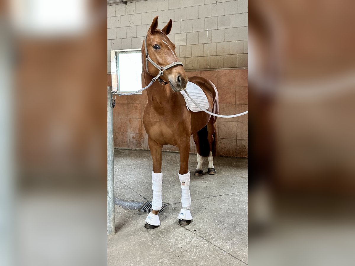 Franzi ist bei uns geboren, aufgewachsen, angeritten und wird jetzt 5x die Woche gearbeitet. Sie kennt Doppellongenarbeit, Bodenarbeit, dressurmäßige Arbeit, etwas Springtraining und natürlich ins Gelände gehen. Die Stute zeigt sich unerschrocken und mit sehr guter Leistungsbereitschaft. Mit einer hervorragenden Hinterhand ausgestattet, schwingt sie immer durch den Körper und gibt einem dadurch ein sehr gutes Sitzgefühl. Wir können uns die Stute sehr gut in der der Dressur vorstellen als natürlich auch im gehobenen Freizeitbereich. Sie ist einfach ein wunderbares Pferd, welches einen neuen Möhrchengeber sucht. Die Röntgenbilder liegen ohne Befund vor und können jederzeit verschickt werden.