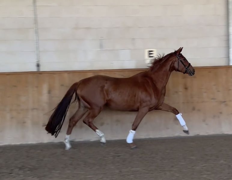 Franzi was born and raised with us, started under saddle, and is now worked 5 times a week. She is familiar with long lining, groundwork, dressage work, some jumping training, and of course, going out on trails. The mare shows herself to be fearless and has a very good willingness to perform. Equipped with an excellent hindquarters, she always swings through her body, providing a very good feeling of balance for the rider. We can very well imagine her in dressage as well as in the higher leisure sector. She is simply a wonderful horse looking for a new carrot giver. The X-ray images are available without findings and can be sent at any time.