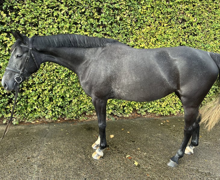 For sale is this 4-year-old mare by Charthago Blue x Conchetto. Crazy Nut stands at 1.68 m. She impresses with her rideability and willingness to perform. Above all, she stands out with her honest character. She was able to place in her first season in show jumping competitions at the A level and is now ready for show jumping L. A current vet check with 18 X-rays showing no findings is available.