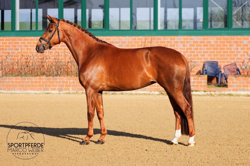 Oldenburger • Stute • *2021 • ca. 1,68 m ⚜️ Vivino – Hochadel ⚜️ ❤️ Traumhafte Fuchsstute mit Perspektive ❤️ Diese sehr typvolle Tochter von Vivino aus einer Hochadel-Mutter überzeugt durch enorme Ausstrahlung, hervorragenden Charakter und viel Qualität unter dem Sattel. Eine moderne, feinfühlige Stute mit genau dem richtigen Maß an Go und Leistungsbereitschaft für den weiteren sportlichen Weg. Die Stute wurde Ende 3-jährig schonend angeritten und erhielt anschließend ausreichend Zeit zur positiven körperlichen und mentalen Entwicklung. Noch nicht öffentlich vorgestellt – somit unverbraucht und mit viel Perspektive für ihre weitere sportliche Karriere. Ein echtes Ausbildungspferd mit Perspektive für höhere Aufgaben: Sie reagiert sensibel und ehrlich auf die Hilfen, arbeitet fleißig mit und bringt eine sehr positive Arbeitseinstellung mit. Sie vermittelt ein stimmiges, angenehmes Reitgefühl und zeigt sich jederzeit klar im Kopf. Drei sehr gute Grundgangarten, eine aktive Hinterhand und ihre klare Leistungsbereitschaft runden das Gesamtbild ab. ➡️ Direkt aus Züchterhand ✅ Sehr guter Röntgen-TÜV inkl. Rücken und Hals vorhanden 📍 Standort: bei Osnabrück 📞 Kontakt: +49 173 3013499