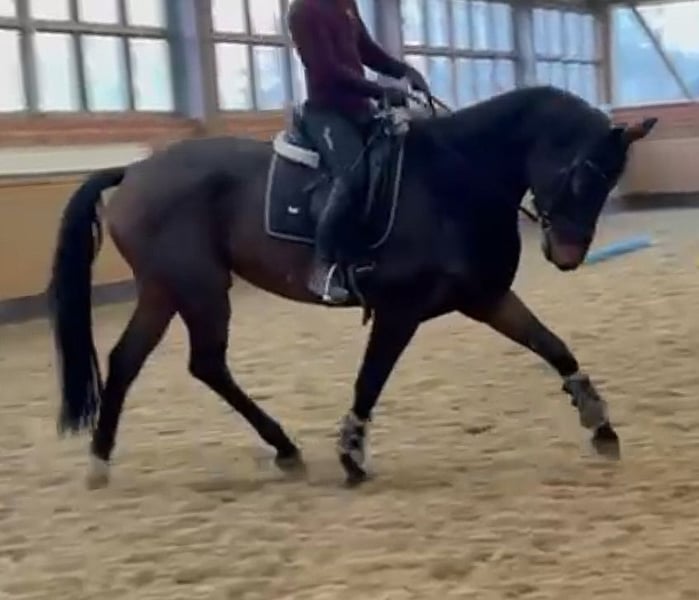 Whoever treats themselves to this horse has something truly SPECIAL. This lineage with this appearance... simply WOW. The pictures do not do justice to her beauty. She has been very well started under saddle, but she is in foal (by v.Secret) for 2026, which is why she is currently on pasture. This gem is only being sold to appreciative hands due to her quality. Good radiographs are also available.
