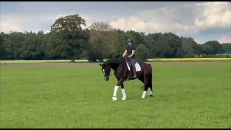Beautiful modern dressage/broodmare 2020 by Dancier Gold/Dr. Jackson/Fürste Heinrich/Rubinstein out of our premium mare DONNA RUBINA II (Elektia dam line) . First born in July so late broken and needs sure more time to show her true quality but nevertheless absolut amateur friendly, lovely and easy to ride. no time spooky and always willing to give her best. Great rideablitly with FEI potenzial and super sweet character. Uncomplicated in handling and by all other things. Has also fun to make a smal jump or to go outside riding. Also a highlight for breeding : Dam DONNA RUBINA II has made a very good mare performance test bevor she started her breeding cariere and she has 4 generations elitemares in her pedigree. So is her older full sister for example through her stunning offsprings already elitemare also. The grand dam is sister to licensed breeding stallion, PSG horses and more state premium/elitemares... The next generation is the full sister to Rohdiamant and Royal Diamond. It is the international very well known Elektia dam line. Sire Dance Gold has made a stunning stallion test and is this year winner of the qualification for the german horse championship with 9 for all his movements and is now successful up to highest dressage. Grand sire Dr. Jackson was 14 years under the top 1% of the breeding list and well known through the rideabiltiy from his offsprings. And on the end of the pedigree Fürst Wilhelm as Wold Champion. Located in Germany (Oldenburg)