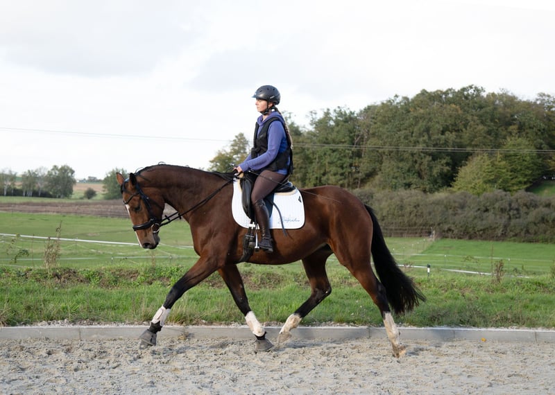 Sanathea vom Seefrieden – Oldenburger Eleganz trifft Dressurtalent! Oldenburger Stute – geb. 2021 – ca. 170 cm – Standort: 01468 Moritzburg Lernen Sie Sanathea kennen – eine traumhaft schöne, braune Oldenburger Stute mit dem gewissen Etwas. Großrahmig, elegant, klar im Kopf – und einfach zum Verlieben. Wer diese Dame einmal unter dem Sattel hatte, steigt mit einem Lächeln wieder ab (oder bleibt einfach oben sitzen...). Abstammung? Erste Klasse. Spielberg x Londonderry – das ist wie Mozart trifft Beyoncé: Musikalisch, modern, kraftvoll. Die Mutter war mein persönliches Lieblingsreitpferd – leichtrittig, angenehm im Umgang, immer motiviert. Die Tochter? Hat noch eine Schippe draufgelegt. Ausbildung & Alltagstauglichkeit • Seit Februar unter dem Sattel – macht ihre Sache top! • Dressurpferde A: ✅ • Dressurpferde L? In Sichtweite! • Offenstall-erprobt und cool im Kopf: Hunde, Bagger, Kinder, Trekker – Sanathea kennt den Wahnsinn des Alltags und bleibt dabei gelassen. Eckdaten auf einen Blick: • Alter: 4 Jahre • Größe: ca. 170 cm • Ausbildungsstand: Dressurpferde A • Talent: Dressur deluxe • Genügend Rahmen für das große Viereck • Röntgenbilder: Vorhanden • Standort: Moritzburg (bei Dresden) Für wen? Für ambitionierte Amateure mit Lust auf Qualität – oder Profis, die ein echtes Talent fördern wollen. Sanathea bringt alles mit, was ein erfolgreiches Dressurpferd braucht: Ausstrahlung, Bewegungsqualität, Rittigkeit und ein Herz aus Gold. Interesse geweckt? Dann freuen wir uns auf Ihre Nachricht! Ob Video, Termin oder einfach mal Kennenlernen – wir machen’s möglich. Aber Achtung: Diese Stute hat Charme. Wer sie einmal trifft, will sie nicht mehr gehen lassen… Sanathea vom Seefrieden – Oldenburg elegance meets dressage talent! Oldenburg mare – born 2021 – approx. 170 cm – Location: 01468 Moritzburg Meet Sanathea – a stunningly beautiful bay Oldenburg mare with that certain something. Large-framed, elegant, clear-headed – and simply irresistible. Anyone who has ever ridden this lady will dismount with a smile (or simply stay in the saddle...). Pedigree? First class. Spielberg x Londonderry – it's like Mozart meets Beyoncé: musical, modern, powerful. The dam was my personal favourite riding horse – easy to ride, pleasant to handle, always motivated. The daughter? She's taken it up a notch. Training & suitability for everyday use • Under saddle since February – doing great! • Dressage horses A: ✅ • Dressage horses L? In sight! • Open stable-tested and cool-headed: dogs, excavators, children, tractors – Sanathea is familiar with the madness of everyday life and remains calm. Key data at a glance: • Age: 4 years • Height: approx. 170 cm • Training level: Dressage horses A • Talent: Dressage deluxe • Sufficient frame for the large arena • X-rays: Available • Location: Moritzburg (near Dresden) Who is she for? For ambitious amateurs who want quality – or professionals who want to nurture real talent. Sanathea has everything a successful dressage horse needs: charisma, quality of movement, rideability and a heart of gold. Interested? Then we look forward to hearing from you! Whether you want a video, an appointment or just to get to know her – we can make it happen. But be warned: this mare has charm. Once you meet her, you won't want to let her go...