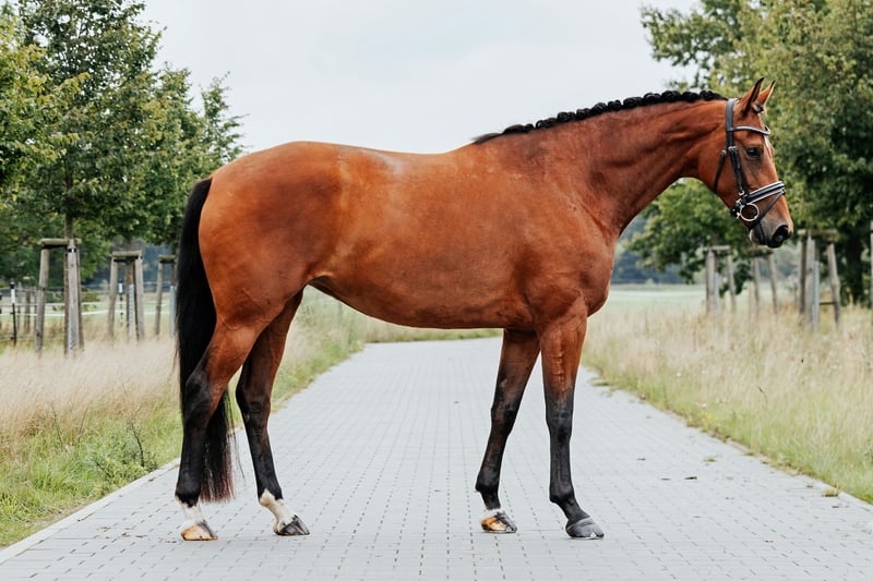 Victoria Eugenia Get on and enjoy the ride! If you haven't found the right horse yet because the spark of riding passion hasn't ignited, then it’s time to consider a trial ride on Victoria. With her, everything simply feels right. She embodies a perfect harmony of rideability, movement, and nerve strength, combined with charisma and top genetics. Our trainer is enthusiastic about her: "Victoria has first-class gaits. You can sit and be carried like on a cloud. She is very comfortable in contact and well-balanced. Victoria is a reliable horse that is always focused, full of joy in work, and she’s the first to come to the fence, eager to be caught. She is also excellent in handling, very affectionate, and truly a horse to love." Victoria has received solid basic training with us and already demonstrates a beautiful trot extension, is capable of shoulder-in at trot and canter, as well as canter-to-walk transitions. Due to her friendly nature and light-footedness, she is suitable for both professionals and amateurs starting from A-level. Even under our young test rider, she gives her best and is accustomed to hacking out. Victoria’s sire is the legendary Vitalis, one of the world's top dressage sires. Her grandmother is the sister of the licensed Grand Prix series winner Sandomere and the PSG-winning Summer Hit S. Her dam also has Danciano, a Grand Prix winner, as her sire, and is sister to a licensed stallion. Good radiographs are available. Victoria can be visited only 30 minutes from Berlin, where she was raised on our farm from foalhood in large pastures within a herd, in a species-appropriate manner. If you would like to meet Victoria and our other young horses or learn more, we look forward to your call at 03301 577 2585! *** The journey is worth it! You can find more horses in our other listings below. ***