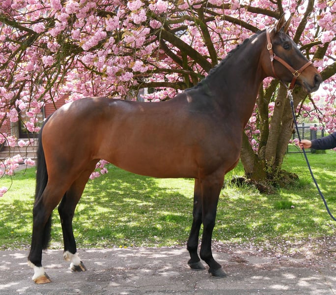 Name: California Dream Alter: geb. 10.05.2021 Geschlecht: Stute Stockmaß: ca. 171 cm Rasse: Oldenburger Abstammung: Cadeau Noir x Fürst Romancier x Spörcken Ausbildungsstand: angeritten Wunderschöne grossrahmige Stute mit bester Abstammung und guten GGA. Sie ist ganz brav im Umgang , menschenbezogen und verträglich mit anderen Pferden. Unter dem Sattel nur für fortgeschrittene Reiter geeignet. California Dream ist komplett geimpft und entwurmt, zur Zeit vorne beschlagen. Alles weitere unter der Nummer 0176 62495567