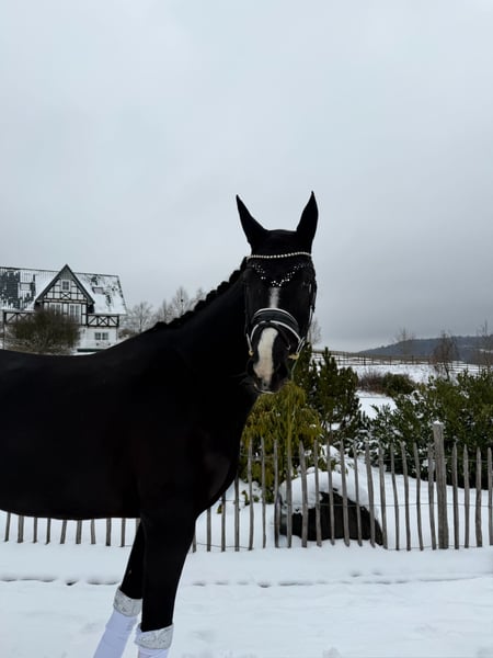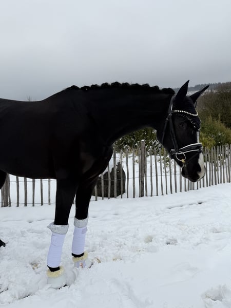 Looking for a head-turner? For sale is this exceptionally stylish 5-year-old mare by Asgard’s Ibiza out of Sandro Hit, which impresses both visually and under saddle on all levels! Equipped with three very good basic gaits and good rideability, she has everything needed to achieve great success in the dressage arena. She is very confident and attentive both in handling and under saddle. Currently competing in Dressage Horse Class A, she is always eager to please her rider and learns very quickly, making a start in Dressage Horse Class L this year definitely feasible. Due to her friendly nature, she would also be suitable for an inexperienced or young rider, especially if guided by a trainer during further training. This is an excellent opportunity to acquire a high-quality, mentally sound training horse with unlimited potential at an attractive price. She is accustomed to the farrier, transport, lunging, and is ridden out with other horses. She can stay with us for further training and competition preparation if desired. X-rays are available and in good condition. She can be viewed and tried at any time! For inquiries and further questions, please contact: 017620052380, WhatsApp available as well.