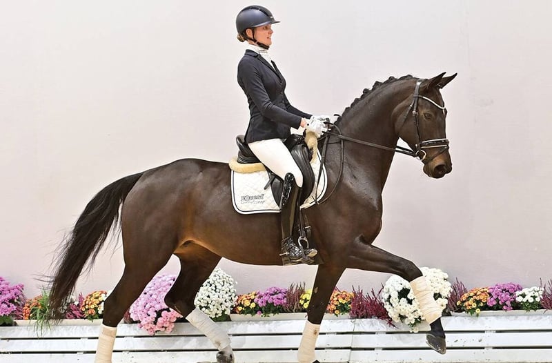 Here is a fantastic daughter of the World Champion Glamourdale. Well-bred and promising, she is poised to make her own way. She comes from a distinguished lineage: the licensed and Grand Prix-winning Fahrenheit/Anja Plönzke, as well as Grand Prix horses Vital-Robert Brillant/Beatriz Ferrer-Salat, ESP, and Rolex TP/Ida Kristoffersson, SWE.
