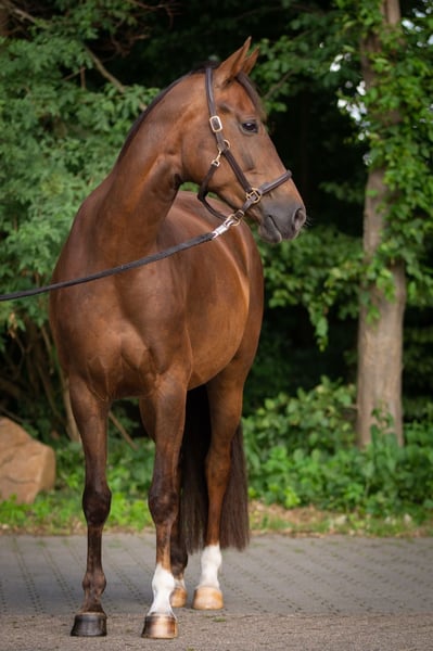 Ich suche für meine Mini ein neues, liebevolles Zuhause. Mini ist eine 6-jährige Stute (*24.01.2020) von Feinrich x Di Maggio x Don Gregory, ca. 1,62 m groß. Sie verfügt über drei gute GGA mit schönem Schwung durch den Körper und überzeugt besonders durch ihre Rittigkeit. Mini ist sehr fein an den Hilfen und möchte ihrem Reiter stets gefallen. Es macht einfach unglaublich viel Freude, sie zu reiten. Auch beim Freispringen zeigt sie sich durchaus talentiert. Aufgrund von Zeitmangel wurde Mini in den letzten Jahren nur phasenweise gearbeitet. Daher ist sie aktuell kein Anfängerpferd, sondern sucht einen Reiter mit Gefühl, Erfahrung und Freude an weiterer Ausbildung. Ende 2023 hatte Mini eine kleinere Gewebeveränderung im Fesselträgerschenkel hinten links, verursacht durch eine Verletzung im Stall. Sie war dabei zu keinem Zeitpunkt lahm. Nach entsprechender Pause ist die Verletzung vollständig ausgeheilt. Ich wünsche mir für Mini jemanden, der sie vielseitig beschäftigt. Sie hat große Freude an Bodenarbeit, geht gerne ins Gelände und bringt durch ihre interessante Abstammung auch Voraussetzungen für die private Zucht mit. Sie ist insgesamt ein feines, sensibles Pferd, das eine einfühlsame, aber konsequente Bezugsperson braucht. Mini kennt keine Boxenhaltung. Sie ist direkt nach der Aufzucht zu uns in den Offenstall gezogen und wurde entsprechend gehalten. Daher bitte nur anfragen, wenn Offenstallhaltung oder alternativ eine Box mit ganztägigem (!) Auslauf möglich ist. Ein aktueller TÜV liegt nicht vor. Mini ist mein erstes selbstgezogenes Pferd und unter besten Bedingungen groß geworden. Umso wichtiger ist es mir, für sie ein wirklich passendes Zuhause zu finden. Sie wird ausschließlich aufgrund der Aufgabe des Reitsports abgegeben und nur mit vertraglich geregeltem Vorkaufsrecht. Bei Interesse kann auch Equipment wie Sattel, Trense, Decken etc. mit übernommen werden. Videos gerne auf Anfrage.