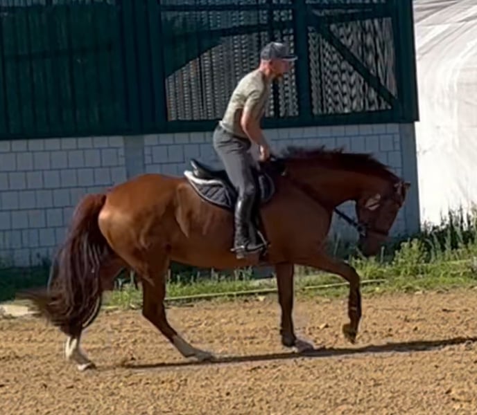 Franzi nació, creció y fue montada por nosotros, y ahora se trabaja 5 veces a la semana. Conoce el trabajo en doble línea, el trabajo en el suelo, el trabajo de doma, algo de entrenamiento de saltos y, por supuesto, salir al campo. La yegua se muestra valiente y con una muy buena disposición para el trabajo. Equipado con una excelente grupa, siempre se balancea a través del cuerpo, lo que proporciona una sensación de asiento muy buena. Podemos imaginar a la yegua muy bien en la doma, así como en el ámbito del ocio elevado. Es simplemente un caballo maravilloso que busca un nuevo proveedor de zanahorias. Las radiografías están disponibles sin hallazgos y se pueden enviar en cualquier momento.