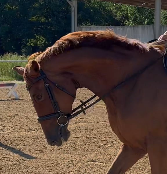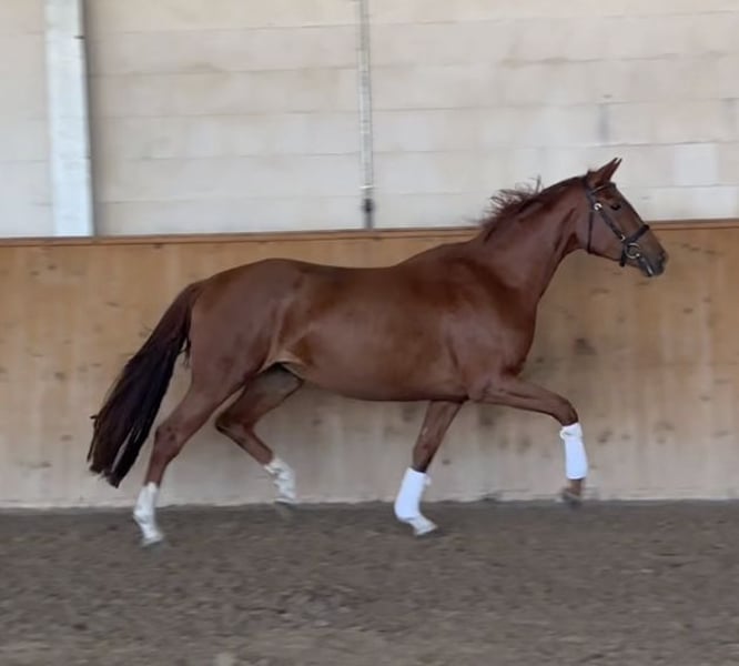 Franzi was born and raised with us, started under saddle, and is now worked 5 times a week. She is familiar with long lining, groundwork, dressage work, some jumping training, and of course, going out on trails. The mare shows herself to be fearless and has a very good willingness to perform. Equipped with an excellent hindquarters, she always swings through her body, providing a very good feeling of balance for the rider. We can very well imagine her in dressage as well as in the higher leisure sector. She is simply a wonderful horse looking for a new carrot giver. The X-ray images are available without findings and can be sent at any time.