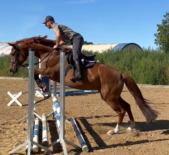 Franzi urodziła się u nas, dorastała, została rozpoczęta w jeździe i obecnie jest trenowana pięć razy w tygodniu. Zna pracę na lonży, pracę na ziemi, jazdę sportową, trochę treningu skokowego oraz jazdę w terenie. Klacz wykazuje się odwagą i dużą chęcią do pracy. Dzięki doskonałej budowie tylnej części ciała, zawsze porusza się harmonijnie, co zapewnia bardzo dobre odczucie podczas jazdy. Możemy sobie wyobrazić tę klacz zarówno w dyscyplinie ujeżdżenia, jak i w rekreacji na wyższym poziomie. To po prostu wspaniały koń, który szuka nowego właściciela. Zdjęcia rentgenowskie są bez zmian i mogą być wysłane w każdej chwili.