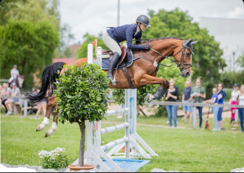 Sporty young mare with top show jumping lineage Quasibella (born 2019) is a strikingly beautiful and modern mare, bringing quality from both sides of her pedigree. Sire Quasimodo van de Molendreef and dam's sire Placido represent excellent show jumping lineage with a lot of willingness to perform and ability. She impresses with her athletic appearance, plenty of energy, and eagerness to work – always pleasant to handle, and is good for shoeing and loading. Quasibella presents herself as a motivated and performance-ready partner. Already placed multiple times in show jumping classes A and L, she playfully demonstrates her great ability at home and completes full courses at M level. An ideal young mare for riders looking for an ambitious show jumping horse with potential for higher tasks.