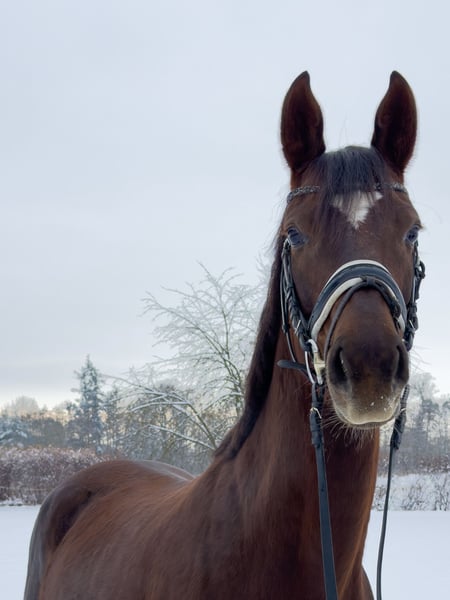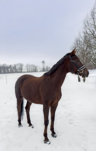 For sale is an expressive 6-year-old dark chestnut mare by Vitalis out of Sir Donnerhall, standing approximately 1.68 meters at the withers. A charming young lady who impresses with her quality, character, and a truly special presence. The mare is fully licensed for dressage horse class A and consistently demonstrates motivation, willingness to learn, and a very pleasant ride. She impresses with excellent basic gaits and a high level of quality under saddle. What is particularly remarkable is her exceptionally sweet and human-oriented nature: she is an extremely affectionate, friendly, and honest mare who is always well-behaved and uncomplicated in daily handling. A horse that immediately captures your heart. A recent inspection report is available and can, of course, be viewed. Summary: A promising young dressage mare with an interesting pedigree, great character, and very good basic training – ideal for ambitious amateurs or for further development in dressage. Further information, videos, and an opportunity for an in-person meeting are available upon request. The sale is conducted on behalf of the breeder. For viewings, test rides, and additional details, the responsible trainer is happy to assist.