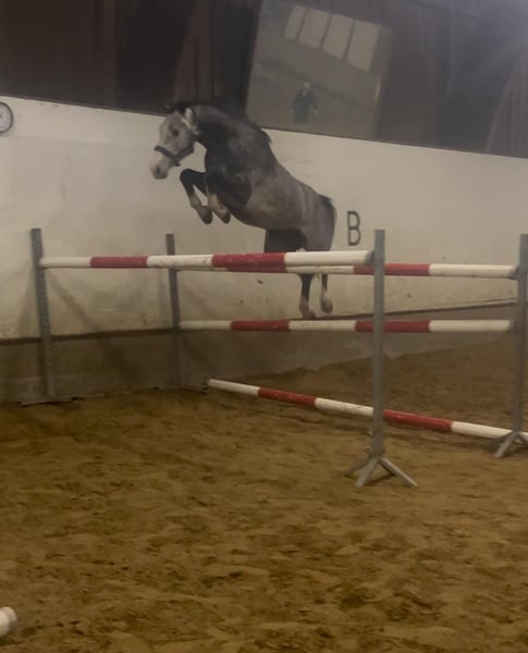 For sale is a young, modern mare in lady type. Carla was only broken in March of this year and began competing in October. She has competed twice in training and once in official competitions, and did clear rounds. She is strong in jumping, doesn't show it in competitions yet because she's a bit shy, but she never refuses a jump. She's brave in the warm-up arena, in the forest, and easily go to horse truck. She's always safe and well-behaved, making her a good choice for a child or less experienced rider. She has great jumping potential, however, she needs time and training, and still needs some dressage work due to her small experience. She is completely healthy and has a perfect X-ray from this year. Located in Poland, 3h from Berlin. I'd be happy to send you more videos, they're too long to post here. Whatsapp +48693895779