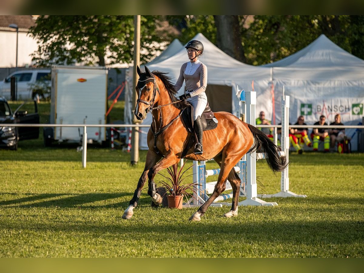 Zur Verkauf steht diese schicke sechsjährige Stute. 2025 Springpferde A gewonnen, Eignungsprüfung plaziert, A Dressur mit 7er Noten und E Springen mit Kind gelaufen. Feste Hindernisse und Wasser stellen kein Problem dar. Trotzdem stimmt die Chemie zwischen uns nicht, was dauerhaft nicht erfüllend ist. Daher suchen wir nach einem neuen passenden Zuhause für unsere Stute. Sie ist ehrlich im Parcours und verzeiht auch mal einen Reiterfehler. Die Stute hat eine gute dressurmäßige Ausbildung genossen, Außengalopp und Kurzkehrt sind einfach abrufbar. Sie steht fein an den Hilfen und ist von jedermann nachzureiten. Sie geht alleine und in der Gruppe ins Gelände. Auf dem Turnier ist sie gut händelbar und gelassen. Sie eignet sich ideal für den ambitionierten Reiter der sich weiterentwickeln möchte und einen Kumpel sucht. Mit dem richtigen Trainer und etwas Zeit ist sie sicher auch ein tolles Pferd für einen talentierten Jugendlichen. Sie ist definitiv ein Kandidat für die goldene Schärpe. Sie wird ausschließlich in nachweislich gute Hände verkauft. Die Stute ist sehr ranghoch und nicht für Offenstallhaltung geeignet. Röntgenbilder liegen vor. Ein Befund, welcher nicht beeinträchtigt, konnte dabei jedoch festgestellt werden. Dazu gerne persönlich mehr. Die Stute wird nicht zur Verfügung gestellt. Auch eine Ratenzahlung ist ausgeschlossen. Ein Probereiten ist nach Absprache gegen eine Aufwandsgebühr von 25 Euro möglich. (Diese wird selbstverständlich beim Kauf verrecht) Bei ernsthaften Interesse gerne telefonisch unter 0162 2353289 erreichbar.