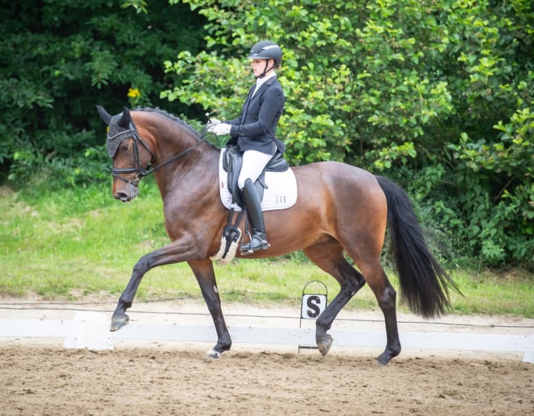 Fame on Fire is a 6-year-old Oldenburg mare by Fürstenball out of an Argentinus dam. She stands at 1.73 m and has a great character. Fame has been gently trained and has many placements and wins in dressage horse competitions at the A+L levels. She is currently trained at M level. Fame is very sensitive to ride and always tries to do everything right. She is also very well suited for pony transition riders. A current large veterinary examination (from 10/2025) is available. For more information, please contact the following phone number: 0170-5487700.
