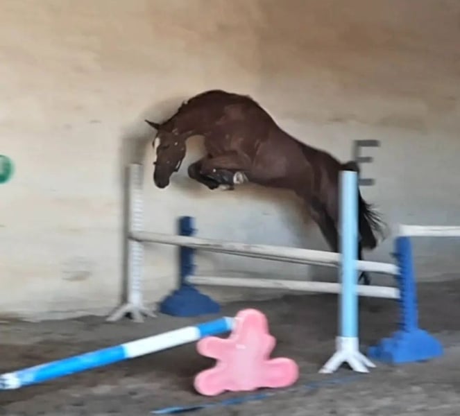 Con grande rammarico, a causa di cambiamenti personali, vendo la mia cavalla baia di 7 anni, alta 1,66 m. È figlia di Coupe de Coeur x Balou du Rouet x L.A. Attualmente è in attesa del suo terzo puledro, previsto per fine aprile / inizio maggio 2026, da Chubakko (stallone della scuderia Beerbaum), e nel 2025 ha già un puledro maschio al passo, nato a fine ottobre 2025. È stata montata in passato, ma negli ultimi 1,5 anni l’allenamento è stato molto irregolare o quasi assente, quindi al momento non è possibile né desiderato un test di monta. In primavera 2024 ha avuto un’infiammazione dentale, che non è stata subito diagnosticata e che ha portato all’estrazione del dente. Probabilmente questo le ha causato problemi di appoggiatura, motivo per cui non viene venduta come cavallo da sport, salto o da competizione, anche se è comunque montabile. Personalmente, la monto occasionalmente per divertimento, in passeggiata o in campagna, ogni 2-3 settimane. Dato che ha molto carattere, non è adatta a principianti o a cavalieri timorosi o insicuri. È molto facile da gestire, il veterinario e il servizio di monta possono intervenire senza problemi o sedazione, ed è già stata coperta anche naturalmente. Il carico su rimorchio o camion e il ferratura non rappresentano problemi. Disponiamo di un certificato di salute del 2022 con 22 radiografie, inclusa la colonna vertebrale. Ha due chip che, secondo diversi veterinari, sono innocui e finora non hanno mai causato problemi o limitazioni. Viene venduta esclusivamente come cavalla da riproduzione, a causa di alcuni “difetti” noti. Il puledro maschio di quest’anno è molto riuscito ed è stato premiato. La monta con Chubakko è molto promettente. Il prezzo richiesto è di 5.500 €, più una tassa di monta di 2 con un costo di 900,00 € più IVA, da pagare alla scuderia Beerbaum al momento della nascita del puledro nel 2026, che il compratore si impegna a coprire con il suo acquisto. Per qualsiasi domanda, non esitate a contattarmi.