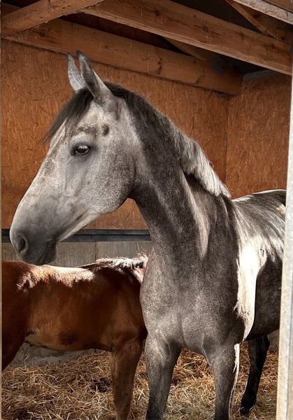 Chardonnay eine jetzt 6 jährige Stute von Cellestial - Canoso, sie ist unverbraucht, nicht angeritten, sie hat Shivering im linken Hinterbein zeigt. (Video auf Anfrage) Sie ist aktuell tragend von Tornado SH OLD ( Toulon x Diamant de Semilly x Voltaire ), und hatte bereits 2024 ein sehrt gutes Hengstfohlen von TornadoSH OLD. Ihr Vollbruder Corfield ein gekörter 6 jähriger Hengst er ist Seriensieger in Springpferdeprüfungen bis zur Klasse M, er läuft aktuell in den USA erfolgreich als Hunter. Bei weiteren Fragen, Videos oder der Hilfe beim Transport kontaktieren sie uns gern.