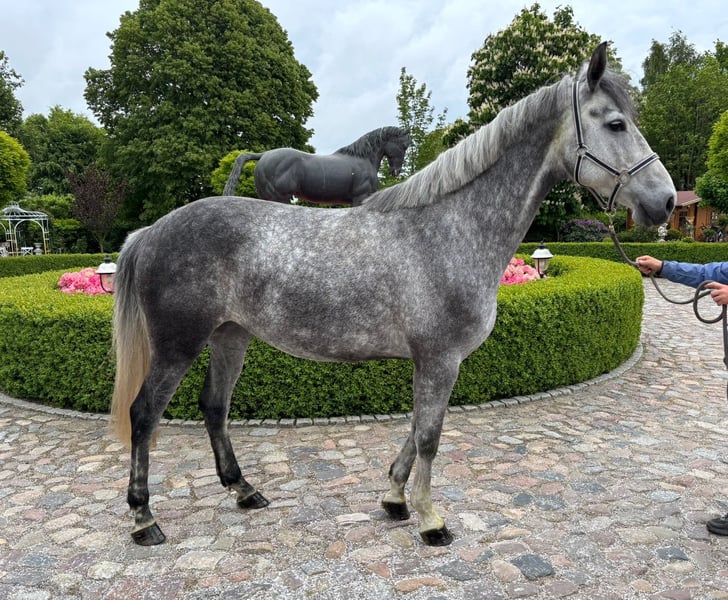Para la venta es una yegua de 4 años de edad por Cellestial - Canoso, ella está sin usar y tiene escalofríos en su pata trasera izquierda. Ella está actualmente en potro a Tornado ( Toulon x Diamant de Semilly x Voltaire ). Su hermano mayor Corfield es un semental de 5 años con licencia de la Yeguada Estatal Redefin y ganador en serie en pruebas para jóvenes saltadores hasta nivel medio (M). Para más preguntas, vídeos o ayuda con el transporte, póngase en contacto con nosotros.
