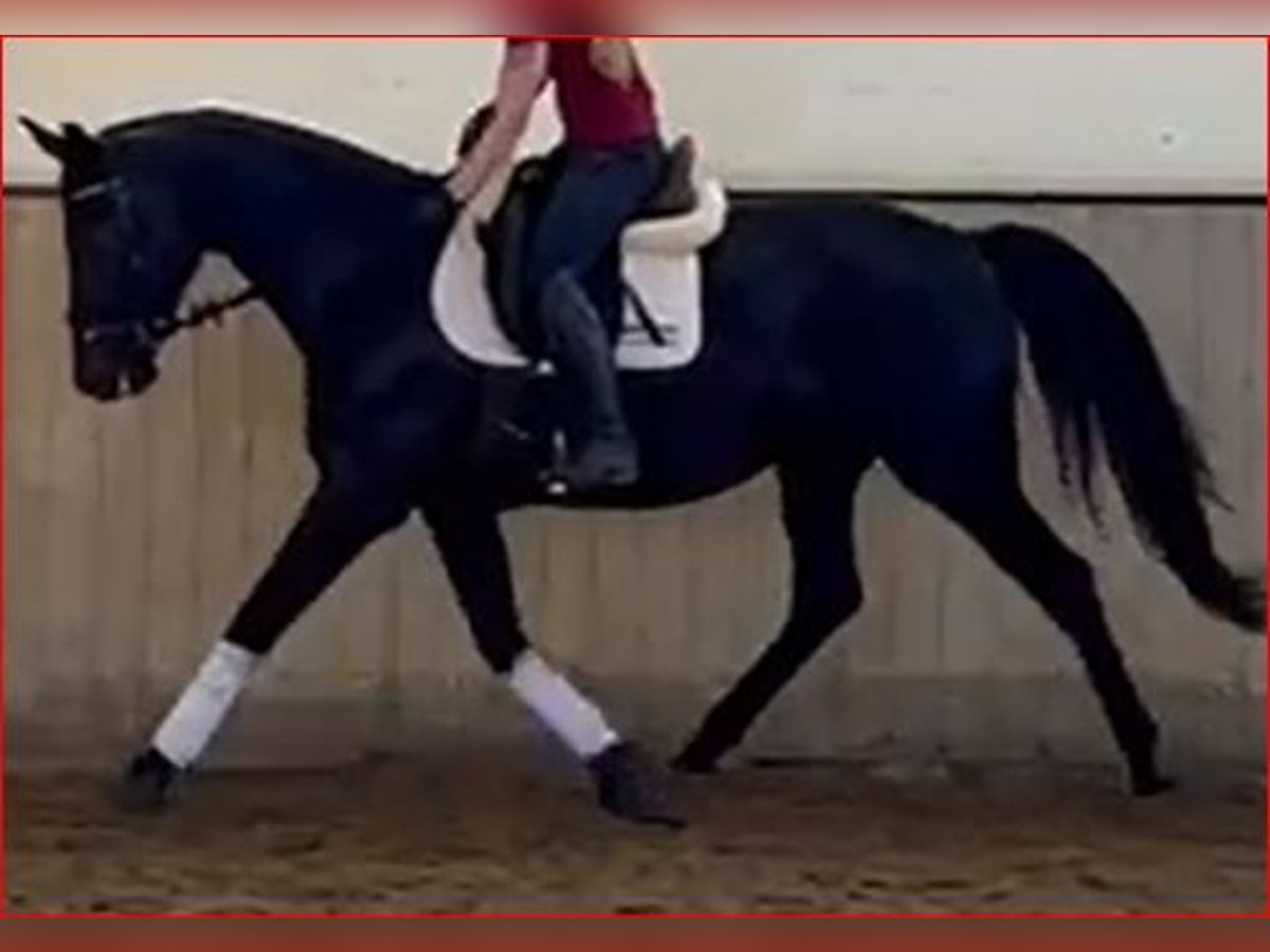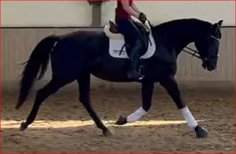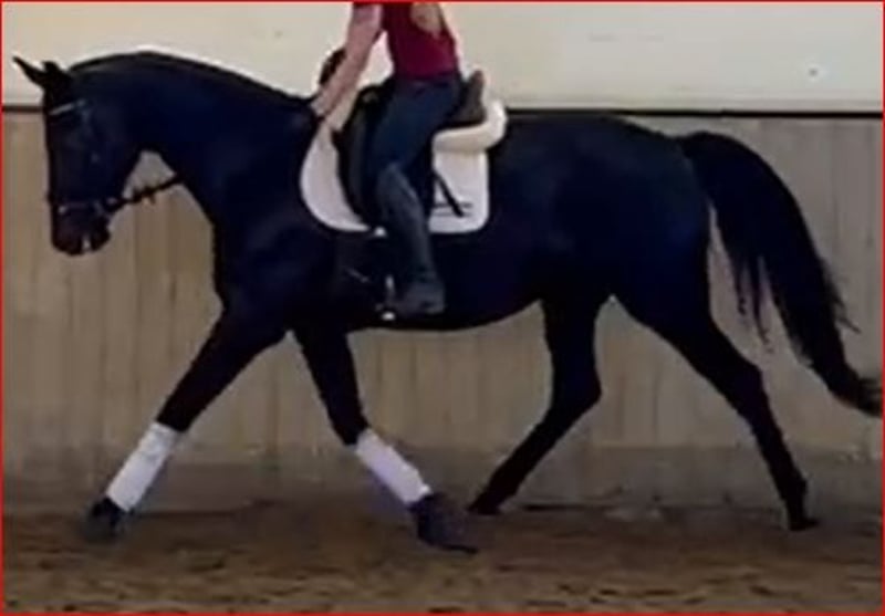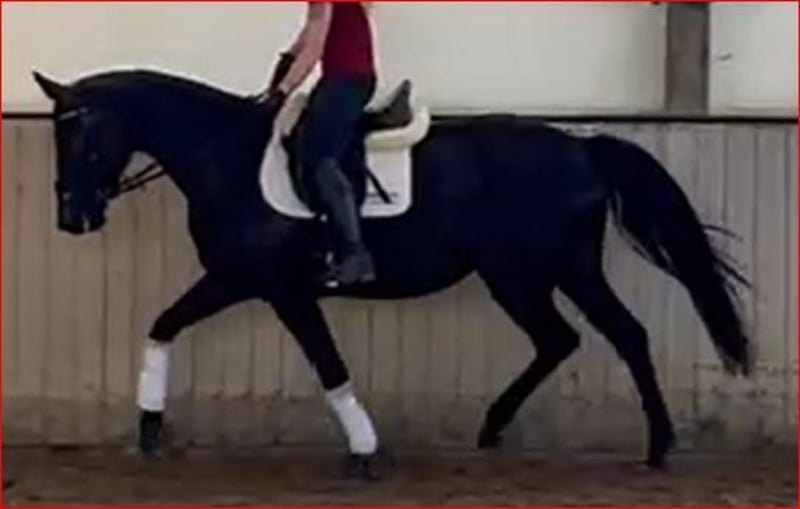 Elegante, ausdrucksstarke und sehr menschenbezogene 5jäh. Stute vom Rittigkeitsvererber Millenium aus einer KWPN-Stute von Undigo. Hier vereinen sich Dressurgene von Sandro Hit x Jazz. Diese sehr unkomplizierte und kopfklare Rappstute ist mit viel Talent für die Dressur wie auch im Springen ausgestattet, bisher mit Reiter im Springen nicht weiter gefördert. Als 3jährige stand sie noch voll im Wachstum und wurde nur ein wenig am Boden gearbeitet da sie als intelligentes Pferd die Kopfarbeit einfach brauchte. Anfang 4jährig dann leicht angeritten, kam zum Ende des Sommers noch mal auf die Weide. Seit Anfang März wieder in Beritt hat sie Lust an der Arbeit, lernt sehr schnell, freut sich über Abwechslung und es macht Spaß sie dabei zu sehen. Artgerecht aufgewachsen in Herdenhaltung mit viel frischer Luft ist sie sehr sozial mit genügend Selbstvertrauen ausgestattet und immer gerecht. TÜV inkl. Rücken o.b. Befund