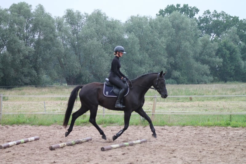 Se vende una yegua muy bonita de 7 años con un rostro expresivo y un carácter agradable. En 2024 tuvo un potro que fue premiado, una clara prueba de su calidad como yegua de cría. La yegua tuvo una operación de hueso de la garra y una extracción de chip, que se realizó sin complicaciones. Desde entonces, ha sido rehabilitada con cuidado y se muestra muy cooperativa y motivada bajo la silla. Ya sea en la pista de equitación o en un paseo relajado, le gusta trabajar y disfruta de la atención y la actividad; ¡también es genial de montar con rienda de cuello! En el trabajo en el suelo, se muestra atenta, dispuesta a aprender y con una comunicación fina. Ideal para personas que valoran una relación de compañerismo con el caballo. Ideal para amantes de los caballos que buscan una yegua versátil y amigable con futuro, ya sea para el tiempo libre, la cría o una formación más avanzada.