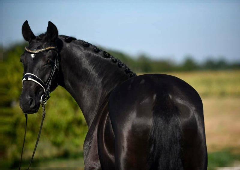 🌟🌟Cavalla Oldenburgh di 7 anni, 165 cm🌟🌟 #Florencio I x #Fürst #Romancier È una cavalla assolutamente equilibrata, calma nel maneggio, molto facile da gestire e non ha assolutamente comportamenti da cavalla. Durante il lavoro quotidiano di dressage, porta molta gioia al suo cavaliere. Si muove facilmente in connessione, risponde bene a ogni aiuto ed è super reattiva, senza essere troppo sensibile. Esegue immediatamente ogni aiuto, compensando con sicurezza anche una sella instabile o un aiuto insicuro. Ha un carattere piuttosto tranquillo, quindi non è necessario lavorarla ogni giorno. Con cavalieri meno esperti, funge da ottima insegnante, mentre con un cavaliere ambizioso è molto concentrata e pronta ad apprendere nuove lezioni. Inoltre, è interessante dal punto di vista della riproduzione: completamente corretta e geneticamente di alta qualità. Controllo veterinario fresco, TUV! Il trasporto è possibile in tutto il mondo.