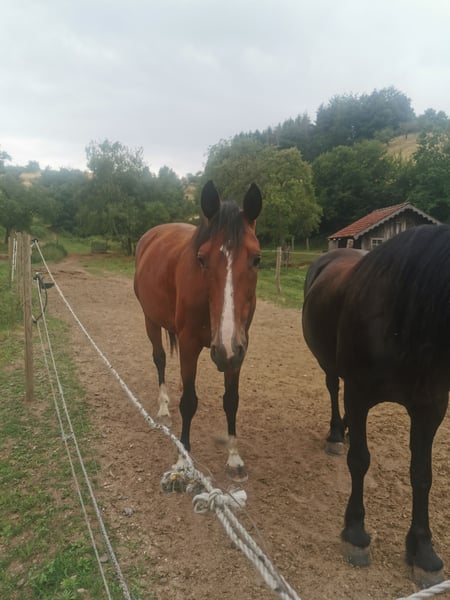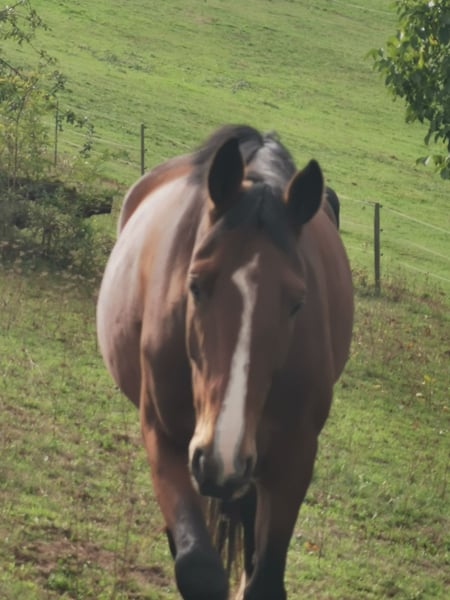 Vente d'une élégante jument de saut Oldenburger – femelle, née en 2018 Nous proposons à la vente une magnifique jument de saut brune de race Oldenburger, née en 2018. Avec une taille au garrot de 1,70 m, elle impressionne par sa stature et sa prestance. L’année dernière, elle a malheureusement subi une blessure au niveau du tendon fléchisseur, qui est désormais guérie. Cependant, elle ne pourra plus concourir en compétition. En janvier, elle s’est également blessée au niveau de la corne suite à un sol gelé et boueux, ce qui a entraîné des fissures dans ses sabots. Elle a pu être montée sans restriction jusqu’en juin et se déplaçait en toute confiance dans toutes les allures de base en manège. Les fissures sont maintenant presque cicatrisées. Pour des raisons personnelles, je souhaite me séparer de mes chevaux, c’est pourquoi je la vends en tant que jument de reproduction ou comme cheval de compagnie, conditionnellement monté. Si vous êtes intéressé, je peux vous envoyer des photos des sabots. Pour toute question ou pour organiser une visite, n’hésitez pas à me contacter. Visite possible sur rendez-vous.