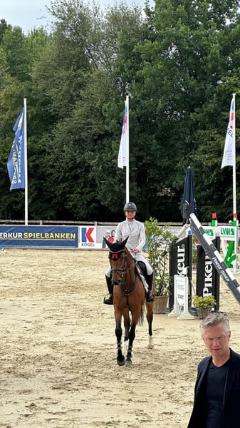 Vendesi cavallo da salto Oldenburger – femmina, nata nel 2016 In vendita una elegante e talentuosa femmina da salto Oldenburger. Nata nel 2016, si distingue per la sua eccellente qualità di salto e il suo temperamento piacevole. Con un’altezza al garrese di 168 cm, rappresenta la misura ideale per cavalieri e amazzoni ambiziosi. Il cavallo bay si mostra estremamente talentuoso e affidabile in salto. Possiede una buona formazione ed è pronta ad affrontare nuove sfide sui campi di gara. Grazie al suo carattere equilibrato, è adatta sia per il salto agonistico che per il dressage amatoriale di livello avanzato. Per ulteriori informazioni e per una visita, sono a disposizione.