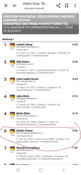 Oldenburg Show Jumper – Mare, born in 2016 For sale is an elegant and talented Oldenburg show jumping mare. Born in 2016, she impresses with her excellent jumping ability and pleasant temperament. Standing at 16.1 hh, she offers the perfect size for ambitious riders. This bay mare is highly talented and reliable in the show jumping arena. She has a good training foundation and is ready to take on new challenges in the jumping course. Thanks to her balanced nature, she is suitable for both competition and dedicated leisure riding. Please feel free to contact me for more information or to arrange a viewing.