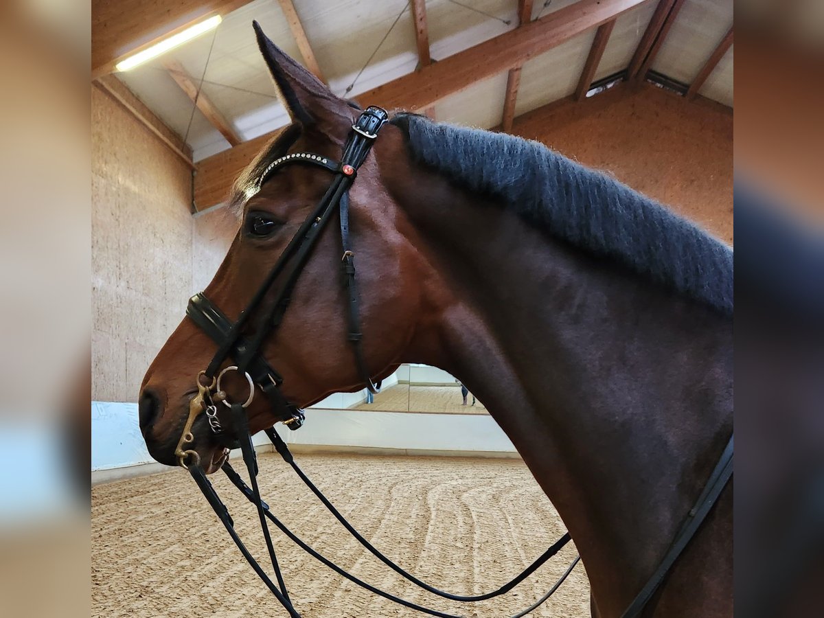 For sale is a beautiful mare born in 2017, sired by Millennium. Romy is a horse with presence, a very special charisma, and a wonderful temperament that leaves nothing to be desired. She has three above-average gaits, was placed at 8s in DPF A as a five-year-old, and is currently competing at M-level. She is also familiar with pole work, small jumps, and occasional hacks. Romy is always motivated, sensitive to ride, and brings a smile to her rider’s face every day. Unfortunately, she is afraid of oncoming horses when ridden. The warm-up area at competitions or a busy indoor arena in winter often cause her stress. Therefore, we are looking for a lovely home on a smaller riding facility and are offering her well below her actual value. She is an excellent school horse for someone who prefers to ride mostly at home and enjoy daily riding. In the paddock, other horses are no problem. She is very sociable and tends to be lower in the herd hierarchy. A quiet herd or a stable with outdoor turnout would also be possible. She is always uncomplicated in handling and loading. Further information and videos are available upon request via phone or WhatsApp at 0160-91648238.