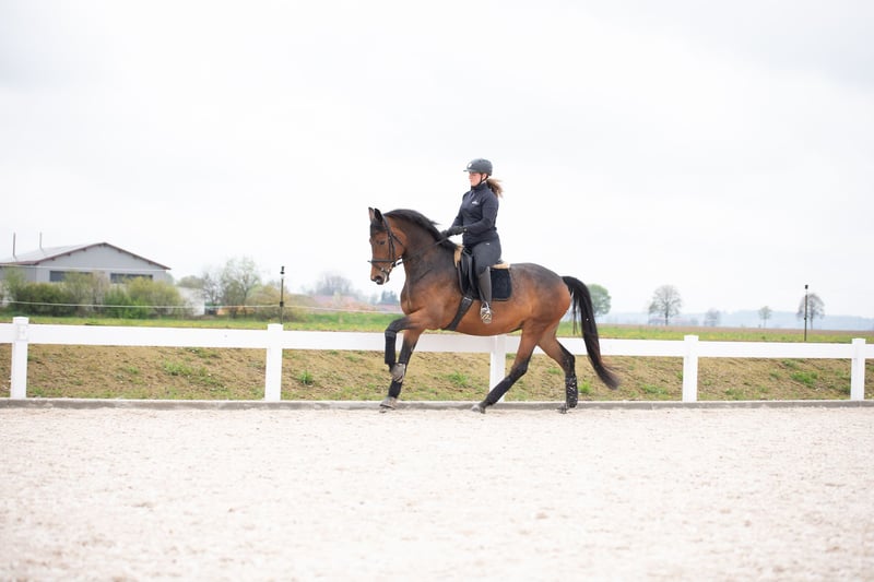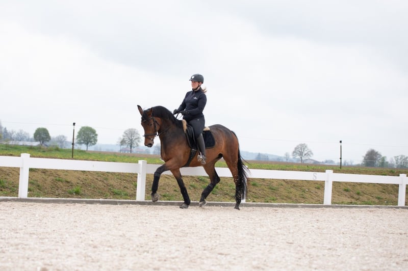 Zum Verkauf steht eine wunderschöne 2017 geborene Stute von Millennium. Romy ist ein Pferd mit Präsenz, einer ganz besonderen Ausstrahlung und einem tollen Charakter der keine Wünsche offen lässt. Sie hat drei überdurchschnittliche Grundgangarten, war 5-jährig mit 8er Noten Dpf A platziert und befindet sich aktuell auf M-Niveau. Zudem kennt sie Stangenarbeit, kleine Sprünge und gelegentliche Ausritte. Romy ist stets motiviert, fein zu reiten und zaubert ihrem Reiter jeden Tag ein Lächeln ins Gesicht. Leider hat sie beim Reiten Angst vor entgegenkommenden Pferden. Der Abreiteplatz am Turnier oder eine volle Reithalle im Winter bedeuten immer Stress. Dadurch suchen wir ein schönes Zuhause auf einer kleineren Reitanlage und geben sie weit unter dem eigentlichen Wert ab. Sie ist ein tolles Lehrpferd für jemanden der schwerpunktmäßig zuhause reiten und täglich Spaß haben möchte. Auf der Koppel sind andere Pferde kein Problem. Sie ist sehr verträglich und eher rangniedrig. In einer ruhigen Herde wäre auch Offenstall denkbar. Im Umgang und beim Verladen ist sie stets unkompliziert. Nähere Informationen und Video gerne auf Anfrage telefonisch oder per WhatsApp unter 0160-91648238