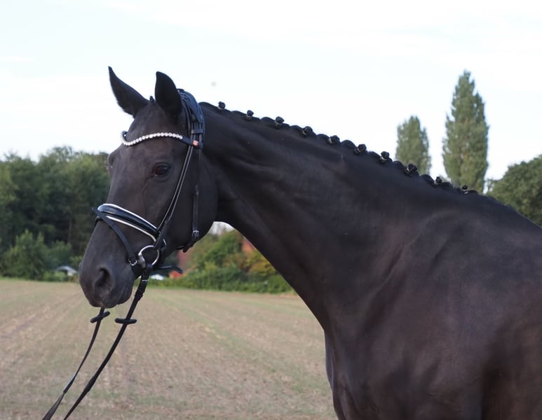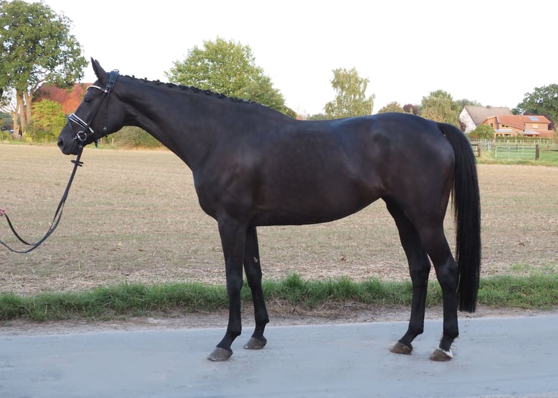 Incredibly strong-moving, noble and typey mare. Has been ridden on dressage horses A level before breeding. Pregnant for 2024 by champion stallion, HLP winner and BUCha finalist "Cafe au lait"! Cafe au lait has been attracting attention for several years with its incredibly successful offspring in dressage and show jumping in the heavy class! He himself was a finalist in the Bundeschampionat under Philipp Weishaupt and has been successful up to S*** jumping, but has also been equipped with three spectacular GGA and has been trained dressage at S level. Stationed with Paul Schockemöhle, he has already fathered several internationally successful show jumpers, including "Royce", winner of the FEI CSI5* $500,000 Rolex Grand Prix Wellington. The licensed Cafe's Champus became Vice World Champion of Young Horses under Rene Tebbel. Also licensed and from our breeding: Cafe Junior (Cafe au lait x Silvio I), placed internationally S*-jumping. Other young horses from jumping dam mares have already placed several times in dressage horse tests A to M and are remarkably strong in movement and clear as head. Even in the large square, the "Cafe's" are convincing all along the line: This is how "Cafe's Casimir" (Cafe au lait x Calido x Grannus) became the celebrated top prize of the Oldenburg Elite Auction, was already a serial winner in dressage horses M at a young age, and at the age of 7 he was again a serial winner in his first S dressage! Meanwhile, he is victorious in international Intermediaire I. Mare Kasselmann's Cafe's Caletta (Cafe au lait x Calato) is also already S-dressage and has just won the international Grand Prix. Cafe's Matts (Cafe au lait x Don Frederico) became the second most expensive dressage horse of the Oldenburg Summer Mixed Sales. All offspring are characterized by high rideability values, dream character and double predisposition! Our foals receive daily mineral feed and foal starters, regular EQUISTRO Haemolytan and Ipaligo Foal, worming and blacksmithing are of course also a matter of course. The mothers also receive special mare feed, juice feed, linseed oil, and hay ad libitum throughout the pregnancy. So our broodmares and their offspring are always in the best state of health! If the pedigree is suitable, it is also possible to trade in broodmares. There are also a few more pregnant broodmares and foals for sale, some of which can be found under the other advertisements. We have around 20 café au lait foals every year. Visits are possible every day. Video enquiries etc. only possible via WhatsApp.