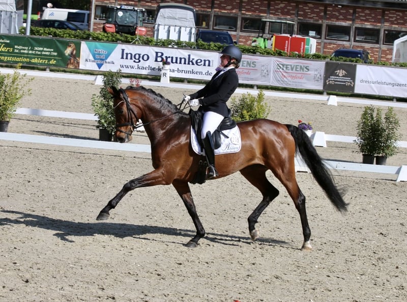 Bildschöne und super elegante Dressurstute Sehr ambitionierte und hochmotivierte Stute mit dem Gewissen etwas. Sie weiß sich immer gut in Szene zu setzen, überzeugt mit ihrer besonderen Ausstrahlung und ihrem auffälligen Bewegungsablauf. Absolut unerschrocken, super zuverlässig und überhaupt noch kuckig oder schreckhaft. In Jungpferdeprüfungen war sie bislang sehr erfolgreich, war nominiert zum Bundeschampionat und ist bis Dressurpferde M platziert. Mittlerweile ist auf einem guten Weg zur S Dressur. Sie ist bestens geeignet für einen jungen ReiterIn oder Junior der in Klasse M Fuß fassen und darüber hinaus auch den Weg noch weiter gehen möchte. Auch für einen ambitionierten DressurreiterIn eine echte Offerte. Die Stute ist gesund und ein aktueller Röntgen TÜV liegt vor. Bei Interesse stehe ich gerne für weitere Informationen und eine Besichtigung telefonisch zur Verfügung.