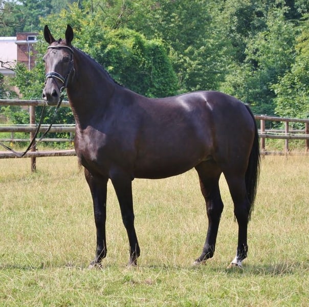 Black Oldenburger mare 2017: Dam Line of Don Schufro !! Beautiful, modern mare by Frascino/Jazz Rubin/Donnerhall/Pik Bube/Unkenruf Mare with world best dam line and pedigree. Sire Frascino is out of best dam line and very successful in sport. Grand sire Jazz Rubin is winner from his stallion test and was later successful up to Intermediare. He is out of Elektia dam line and his dam is full sister to Rohdiamant/Royal Diamond Than comes Donnerhall and Pik Bube in the Pedigree and the dam line is the "line Finnländerin". Grand dam from the mare is full sister to starshire Don Schufro . Dam is sister to proofed breeding stallion, elitemares, winner qualification german horse championship, PSG horses... So with less words : Mother line is dam line FINNLÄNDERIN (grand dam from the mare is full sister to Don Schufro). Through grand sire Jazz Rubin comes also the ELEKTIA line in the pedigree because his dam is full sister to Rohdiamant. And through Fracsino comes the dam line JUGGEMA line in the pedigree (Grand dam is mother from the Olympia stallion Desperados FRH). This is a pedigree which you find only one time by a broodmare !! The mare is not riden until this time because she has had in 2022 and 2023 amazing fillies. But is in good health so riding could sure also start. Is located in Germany by www.quadriga-pferdehaltung.de