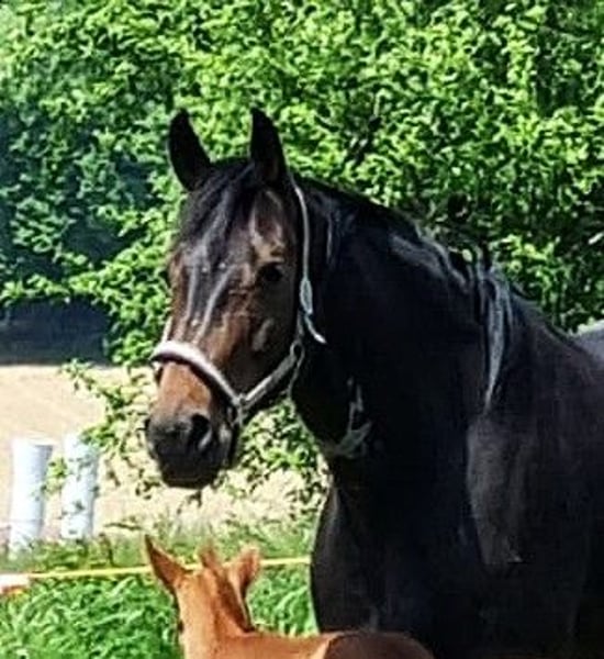 A causa di motivi di allevamento e di un soggiorno all'estero, questa splendida, brave e premiata Verbandstute viene ceduta. Nata nel 2017, di colore baio scuro, circa 176 cm di altezza al garrese, figlia di FAHRENHEIT x STEDINGER. È cresciuta in paddock con molta libertà di movimento ed è stata montata da una cavallerista di livello S in età avanzata. A Oldenburg, è stata riconosciuta come cavalla da riproduzione con attestato VPr. e ha completato con successo la valutazione di selezione (SLP). Da allora è stata montata solo sporadicamente. Ha avuto due puledri (2023 e 2025) da BENICIO, entrambi premiati come puledri di alta qualità, entrambi di colore morello scuro. Non è stata fecondata per il 2026. Linea materna: Due cavalle di élite di fila, seguite da una cavalla di StPrST. Il fratello completo della madre è un stallone premiato di Oldenburg. Linea di sangue: Oldenburger Stamm 74.