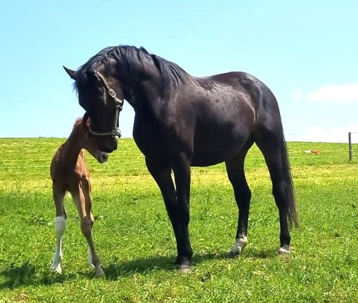 Ze względu na plany hodowlane i wyjazd za granicę, ta piękna, spokojna klacz z prestiżową odznaką hodowlaną jest do sprzedaży. Urodzona w 2017 roku, ciemnobrązowa, około 176 cm wzrostu, po Fahrenheicie x Stedinger, wyrosła na pastwisku z dużą ilością ruchu, późno zaczęta pod siodłem przez jeźdźca na poziomie S. W Oldenburgu zarejestrowana jako klacz hodowlana z odznaką VPr., ukończyła próbę użytkową (SLP), od tego czasu jeźdzona sporadycznie. Miała dwa źrebięta (2023 i 2025) z Benicio, oba z odznaką hodowlaną, oba ciemne, nie zapłodniona na 2026. Linia matki: Dwie klacze z elitarnej linii z rzędu, następnie StPrST. Pełny brat matki to oldenburski ogier z odznaką hodowlaną. Stamm stuteri Oldenburg 74.