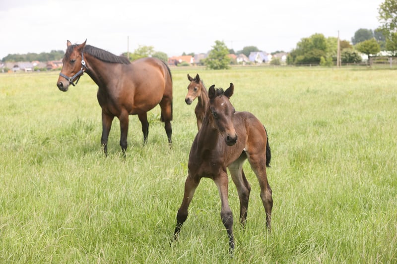 Diese bildhübsche Stute ist aktuell tragend von Federer, der bereits siebenjährig zwei S-Dressuren für sich entscheiden konnte. Erwarteter Abfohltermin ist Anfang Mai. Das Fohlen aus derselben Verpaarung (Foto) aus dem vergangenen Jahr sicherten sich Kunden aus Amerika. Aus dem Stamm kommen die Prämienhengste Fürstbischof und ganz aktuell Dynamic Plaisir. Auch der in Dänemark gekörte Bueno SL sowie die Grand Prix-Pferde Sultan des Paluds FRH und Friedolin entstammen dieser Stutenlinie.
