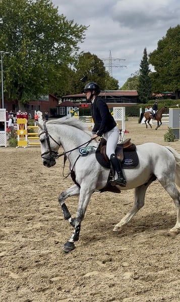 For sale is a truly exceptionally kind and uncomplicated stallion who impresses not only in sports but also with his lovable and friendly nature, truly a gentleman with a sporting spirit and a heart in the right place ✨ Jimmy always keeps a clear head, whether in training, at competitions, or out on the trails; even a mare in heat cannot disturb his calm, yet he has enough go to effortlessly jump a course of 125cm. He always wants to get to the other side and consistently tries to compensate for riding mistakes. With his great dynamics and technique over jumps, there seem to be no limits for Jimmy. He has been presented and placed in the current competition year. In dressage, he is very pleasant to ride, without a whip or spurs, always responsive and light to the aids. Of course, he is also suitable for children or less experienced riders. In handling, Jimmy does everything you could wish for—leading, grooming, grazing, paddock, lunging, trailer loading—of course without a stallion gate and even with neighbors! Loading onto a truck, washing, riding without a saddle… this is all no problem at all! We wish for this truly exceptional horse a 5-star ⭐️ home where he lacks nothing. Where he can be an athlete, friend, and heart horse—where he will be pampered and lovingly supported, yet still allowed to be a horse! 💛 Jimmy will only be placed in the very best hands ✨ A meeting and trial ride is possible at any time; we charge a fee of €30, which will be deducted from the purchase price. Location: 65549 Sale on behalf of someone else.