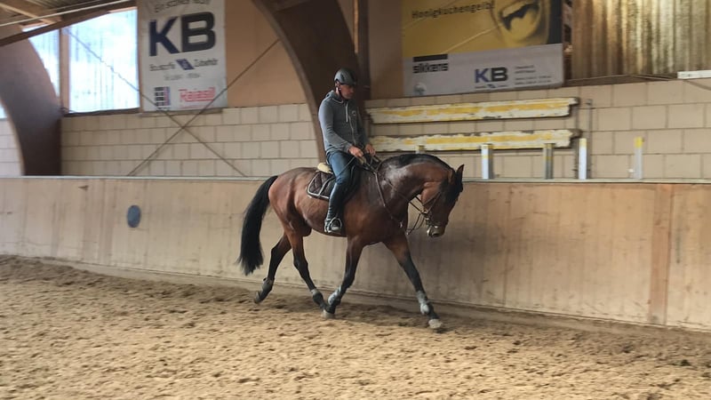 Ich habe Leon seit 10 Jahren, er hatte niemals Hengstmanieren , steht auch oft neben Stuten oder geht zusammen mit Ihnen ins Gelände . Er war nie krank . Er hatte mal eine Tritt-Verletzung auf der Koppel bekommen. Es hatten sich Chips gebildet, die durch eine Operation alle beseitigt wurden. Das ist im Alter von 6 Jahren passiert. Seitdem wird er regelmäßig freizeitmäßig geritten. Vor ein paar Wochen ist er mit einer Reitanfängerin eine E Dressur und ein E Springen gegangen und war jeweils platziert !! Ausreiten macht ihm sehr viel Spaß. Grundsätzlich ist er eher ein gemütlicher Kamerad. Deshalb ist er auch sehr gut geeignet für den ängstlichen Reiter oder den Anfänger.. Er ist sehr sympathisch ,sehr hübsch, sehr brav im Umgang , schmiede und verladefromm und zu seinen Lieblingsbeschäftigung gehört auf jeden Fall viel Heu fressen 😄 Platz ist eindeutig vor Preis .