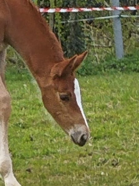 Capper is a lively foal with a lot of charm and zest for life. He is elegant and long-legged with a correct foundation. He is developing promisingly and is people-oriented; he is already familiar with the halter. His father, Cador, won show jumping competitions at a young age with dream scores of up to 9.0. He qualified multiple times for the Bundeschampionat of show jumpers. Cador was successful in high-level show jumping - both nationally and internationally. In 2015, he was awarded Oldenburg Stallion of the Year (VTV Stallion). Ten years later, in 2025, he received the highest honor from the Oldenburg Association and was crowned Oldenburg Elite Stallion. Cador's father, Catoki, was highly successful in international show jumping, winning World Cup competitions with Philipp Weishaupt. He also produced numerous 5*-horses, such as the former championship horse of Laura Klaphake, Catch me if you can, with which she won team bronze at the World Equestrian Games in 2018 in Tryon. Cador's mother, St.Pr. and Elite Mare Lady Heida II by Landor S, received a jumping score of 10.0 in the mare performance test and is a full sister to the Bundessieger mare St.Pr. and Elite Mare Lady Heida I. From this mare line of Heida come many licensed stallions, such as Coulthard, Diamant de Landor, Diamant de Plaisir I and II, Calandor, Incello, Lagoheidor G, Lambrusco Ask, Landor S, Landwerder, or Omnistar (Source: https://sosath.com). Information about the dam line: Capper's young mother, Peppita, is a daughter of the elite stallion Sergeant Pepper I. He was reserve champion at the licensing, HLP winner, Oldenburg main premium winner, 2x state champion, and was a finalist 3 times at the Bundeschampionat (third as a 4-year-old). He was highly successful with over 24 S-class victories in Germany and abroad, including in Madrid and London, and served as a reserve horse at the Olympic Games in Athens. Peppita's maternal grandfather, Contendro I, is a record-breaking and living legend, as he is the only stallion ever to be simultaneously highly ranked in the lists of show jumping, dressage, and eventing sires due to his successful offspring. For 9 years, he has been among the TOP-30 of the world's most successful show jumping sires and consistently at the top in eventing. Mother Peppita descends from the mare line of Pierouschka, which has been maintained by the Ovelhey family in a breeding tradition spanning over 100 years. The Ovelhey breeding program is filled with national and international sporting successes, licensed stallions, and countless breeding show successes.