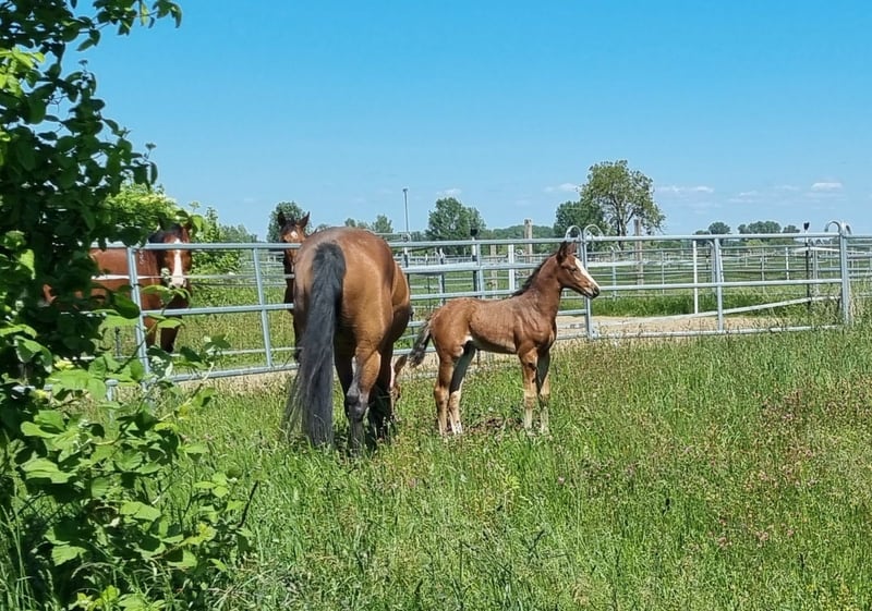 Potro de cría de color llamativo, nacido en primavera. Con sangre de alto rendimiento tanto por parte materna como paterna. Parentesco destacado: Rocca R.T OLD, finalista en los Campeonatos Federales y actualmente con éxito internacional en EE. UU. Noche de Ronda, ganadora del Gran Premio de Aachen con McLain Ward. El padre es un joven semental, Canoche de Ronda, por Chacfly, aprobado y reconocido para Oldenburg, Mecklenburg y DSP. La madre es de Conthalou / Lovis Corinth. El semental también está en nuestra finca y puede ser visitado. Ubicación: 76777 Neupotz, cerca de Karlsruhe, Teléfono: +49 176 20430533