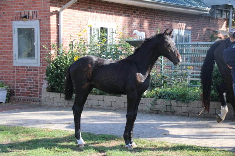 Excellent colt. The foal is familiar with basic foal handling and is well-behaved. Motherline information: He is the second foal of his mare. The full brother, who is one year older, is currently in stallion training. From the granddam, the first offspring have already achieved ratings up to St. Georg, and several foals have also been sold through Oldenburg auctions.
