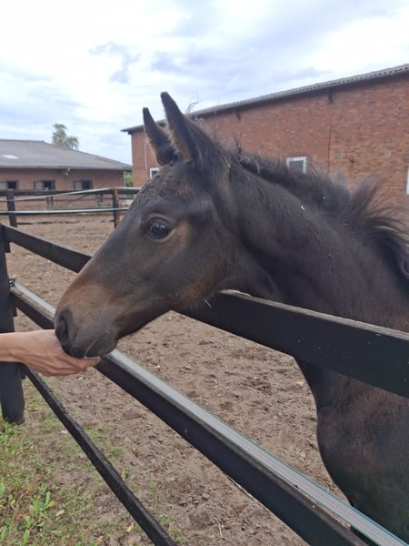 Zum Verkauf steht dieser Hengstabsetzer von For Dance aus einer Fürst Fugger x Dormello Mutter geboren in 07/25. Er besticht durch sein sehr korrektes Fundament und seinen Typ und Ausdruck. "Fritzi" bringt drei sehr gute Grundgangarten mit, wobei besonders der Trab hervorgehoben werden muss. Des Weiteren besticht er durch seinen hervorragenden Charakter. Selbstverständlich beherrscht Fritz das Fohlen ABC und wurde regelmäßig dem Hufschmied vorgestellt sowie entwurmt. Bei Interesse können gerne Videos zugeschickt werden.